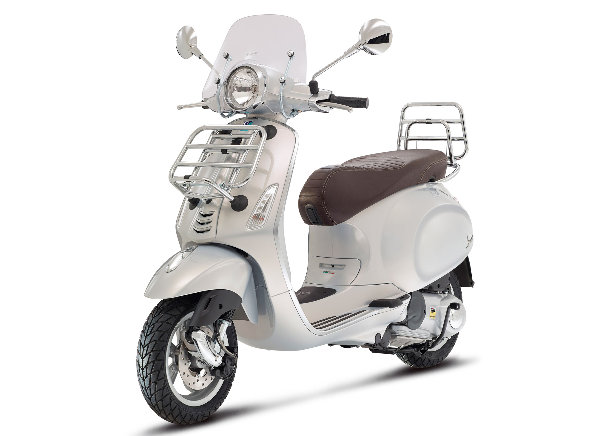 Las parrillas frontal y trasera cromadas ya forman parte de la iconografía de las vespas clásicas e incrementan la capacidad de carga del scooter más popular del mundo.
