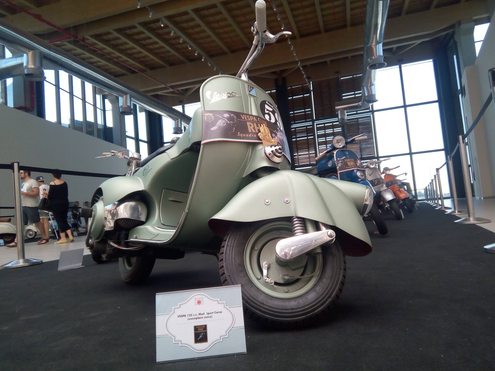 Se exhiben piezas únicas, con rarezas tales como la Vespa PX 150 cc Mod.SuperCau 94, de la que sólo se produjeron 99 unidades.