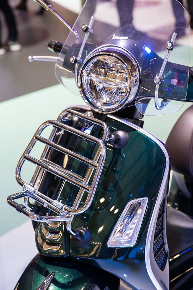 El logo «Vespa» grabado por láser añade un toque más de elegancia y exclusividad.