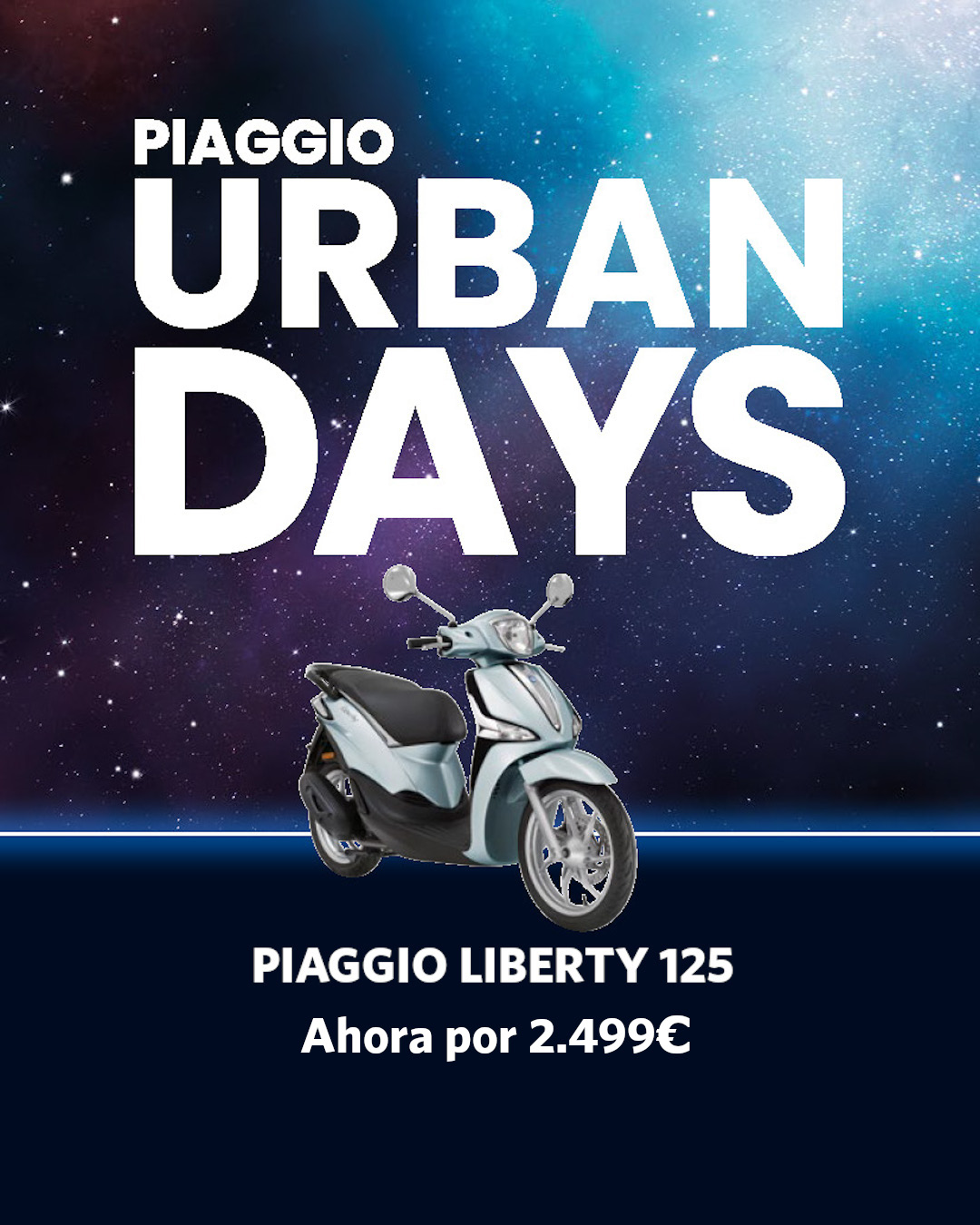 *Oferta válida desde el 01/10/2025 hasta el 31/10/2025 en los concesionarios oficiales Piaggio adheridos. Las ventajas en la gama Liberty se pueden reconocer a través de varias posibilidades, también combinadas entre sí, como descuento, regalo de la matriculación, coste de gestoría, regalo del seguro anual, accesorios, etc. Oferta no acumulable a otra promoción de la marca.