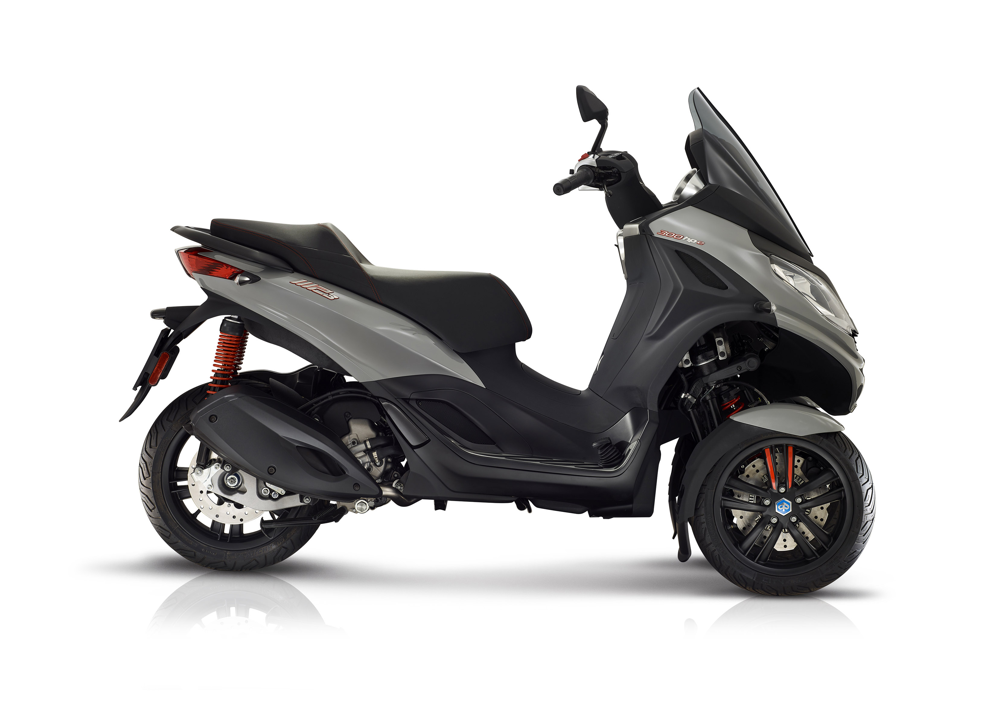 A nivel electrónico, además de sistema ABS de tres canales (Continental), ofrece control de tracción ASR (Acceleration Slip Regulation). De serie, también equipa la plataforma multimedia PIAGGIO MIA de conectividad para recibir todo tipo de información a través del teléfono. El sistema de frenado incorpora frenos de disco en las tres ruedas, con un diámetro de disco de 258 mm en la parte delantera y 240 mm en la parte trasera.