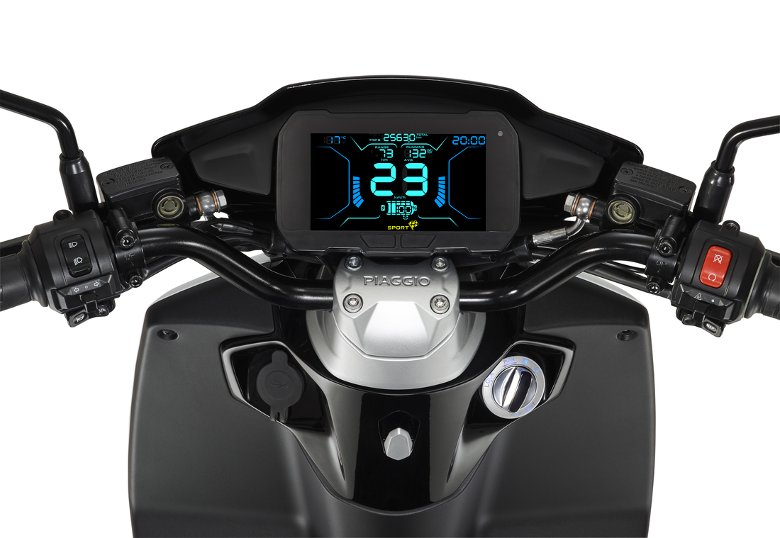 Piaggio ONE cuenta con un rico equipamiento tecnológico que incluye instrumentación digital en color con sensor que adapta los fondos y el brillo al entorno, luces full LED, sistema de arranque sin llave, dos mapas de motor. El diseño original de Piaggio ONE casa con la esencialidad dictada por las necesidades de la movilidad eléctrica urbana, pero no renuncia al estilo inconfundible, la calidad de los materiales y los montajes que caracterizan a toda la gama de scooters Piaggio.