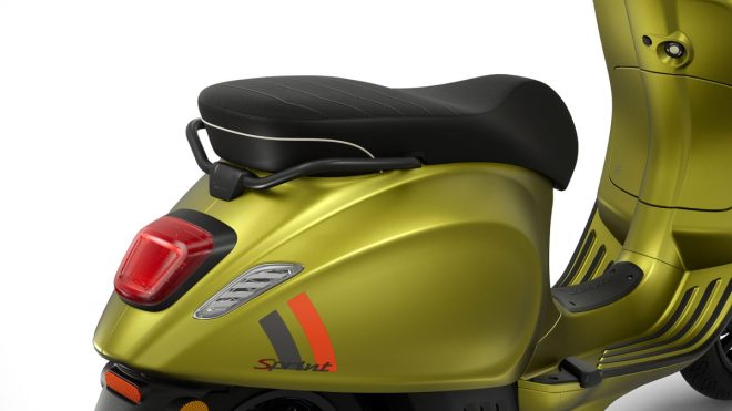 Además de disponer de iluminación full-LED, llantas de 12/11 pulgadas y freno de tambor trasero, también incorpora arranque sin llave, que sustituye el clásico interruptor de encendido por un práctico selector. El usuario sólo necesita colocarlo en la posición ON y luego el motor arranca como de costumbre, utilizando el botón situado en el cuadro de mando derecho. La llave se utiliza para abrir el asiento y activar el sistema de identificación remota de Vespa, que hace que todos los intermitentes parpadeen, una función especialmente útil en aparcamientos concurridos.